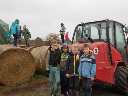 Wir durften auch ganz viele kleine Ferkel mit ihrer Mutter beobachten. Bei der täglichen Arbeit auf dem Hof konnten wir sogar mithelfen. So wurde ein Zaun für die Kühe mit aufgebaut, beim Auslösen des geernteten Maises machten alle mit. Interessant war, welche Tiere für wie viele Tage jetzt mit unserer Hilfe mit dem Mais versorgt wurden. Familie Richter hatte zum Mittagessen für uns ein liebevolles Büffet hergerichtet mit leckeren Würstchen aus eigener Herstellung. Es gab Nudelsalat, warmen Tee und selbstgebackenen Kuchen. Es war alles so lecker! Die Kinder hatten super viel Spaß zwischen den Strohballen Fange zu spielen! Ein sehr erlebnisreicher Tag wird uns lange in Erinnerung bleiben – ein großes Dankeschön an Familie Richter für dieses tolle Erlebnis.
