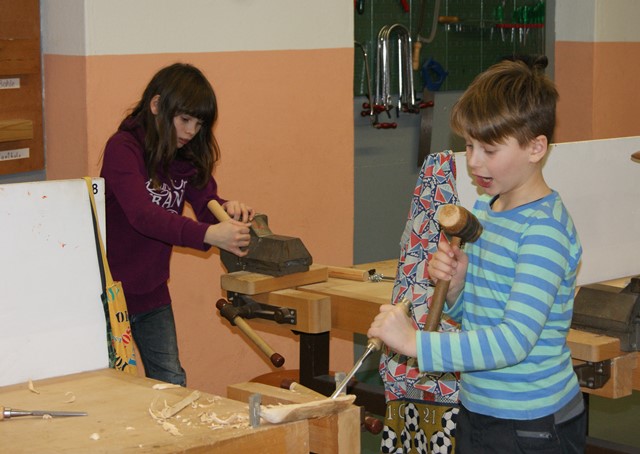 Bei der Anfertigung unserer selbstgeplanten Werkstücke schwingen wir so allerhand Werkzeug. Ob Säge, Hammer, Meißel, unser Element ist der Werkstoff Holz aus dem wir wahre Kunstwerke und Alltagsgegenstände zaubern.