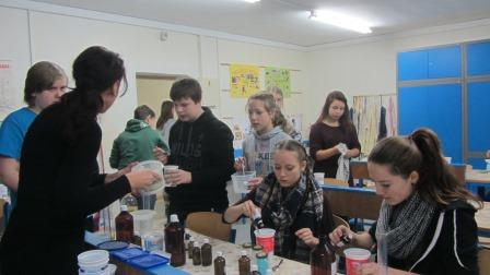 Unsere Klasse 8a vom Schulzentrum "Dr. Albert Schweitzer" hat am 02.12.2015 das Projekt "Naturkosmetik" durchgeführt. Betreut hat uns Fr. Schurmann von der AOK. Sie hat uns am Anfang gesagt, was zum Beispiel unsere Haut beeinträchtigt. Danach haben wir uns in zwei Gruppen aufgeteilt. Die erste Gruppe hat Kosmetik hergestellt. Es gab Haargel, Gesichtspeeling und Bodylotion. Alles wurde aus natürliche Produkten hergestellt. Währenddessen hat die zweite Gruppe angefangen, Informationen zum Thema Haut und Hautpflege mit Hilfe des Internets zu beschaffen, um ein Plakat zu erstellen. Nach einer Pause wurden die Gruppen gewechselt. Nun hat die erste Gruppe das Plakat beendet und die zweite Gruppe hat ihre kosmetischen Produkte hergestellt. Es hat Spaß gemacht und wir danken Fr. Schurmann für diesen schönen Tag.